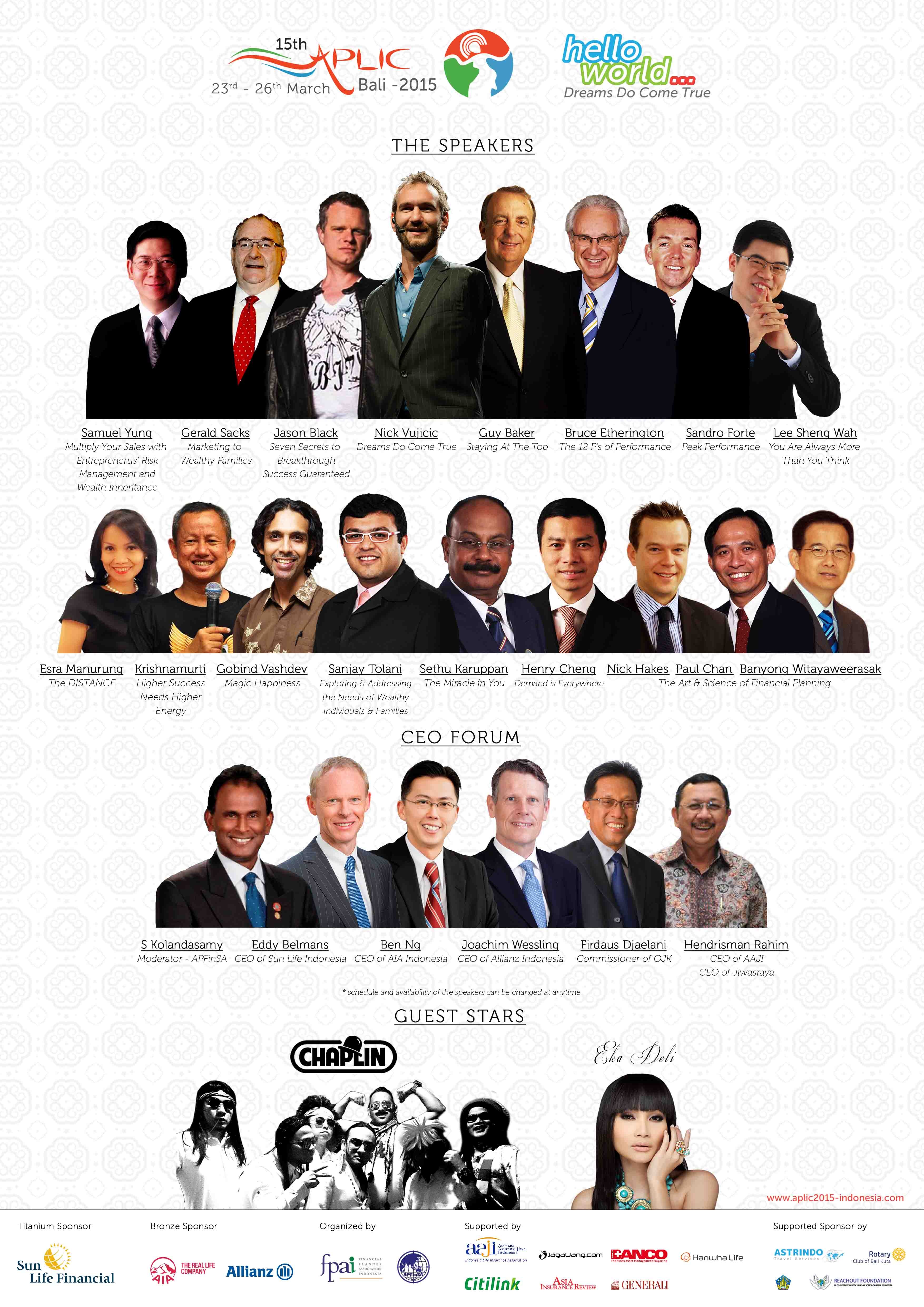 For financial industry professionals, come to Asia Pacific Life Insurance Congress at Bali Nusa Dua Convention Centre to rejuvenate yourself, to remind yourself on what is important in this industries, in life. Let them remind you that Dreams Do Come True. www.aplic2015-indonesia.com .